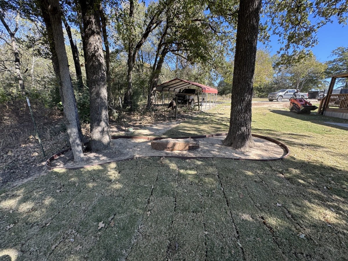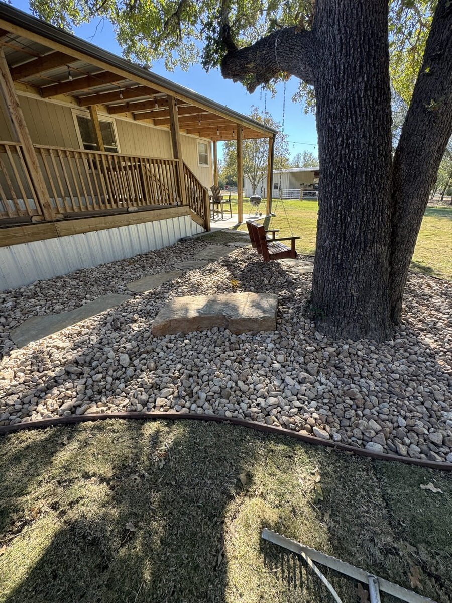 In shaded yards, grass often struggles to survive, leaving bare soil and constant erosion around trees. That was the case in this Bremond property, where repeated attempts to grow turf were unsuccessful. The area lacked a reliable surface and made the space under the trees difficult to enjoy or maintain.